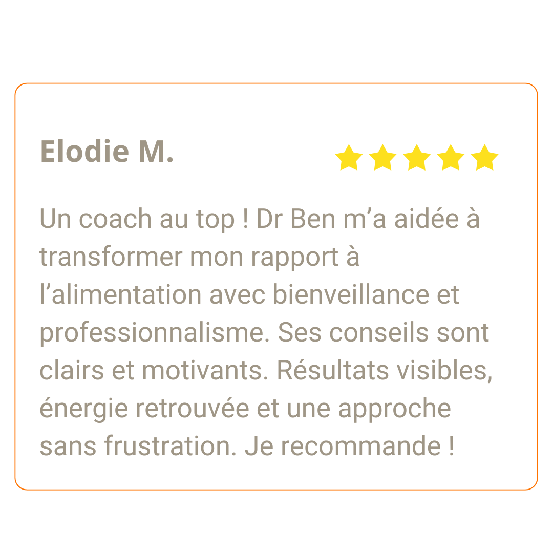 Dr Ben ABDA est coach en nutrition certifié et docteur en pharmacie, spécialisé dans l'accompagnement de la perte de poids. Sa méthode allie science de la nutrition, pouvoir des habitudes et accompagnement bienveillant pour des résultats durables.